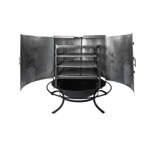 Designed for chefs who require exceptional temperature control, the Professional Smoking Jacket enhances flavor control and heat retention. Two hinged doors and a hinged top cover allow for optimal airflow adjustment and easy access, while three high-temp thermometers provide accurate temperature monitoring. Durable and easy to clean, this jacket ensures consistent, smoky results for proteins, produce, breads, and desserts, making it an essential tool for serious outdoor culinary endeavors.