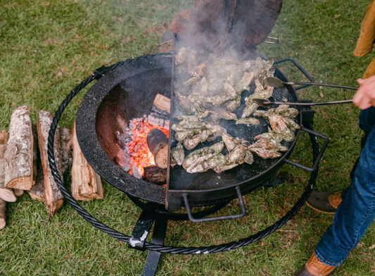Cooking a spatchcocked turkey over an open fire on a Sea Island Forge Kettle gives the bird an incredible smoky flav...
